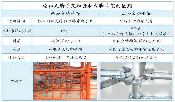 一圖看懂輪扣式與盤扣式腳手架的不同之處
