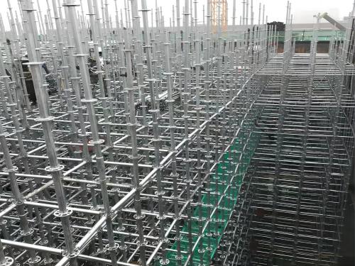 2、輪扣式腳手架安裝基礎(chǔ)要夯實平整并采取混凝土硬化措施。 3、輪扣式腳手架宜使用同一標(biāo)高的梁板底板的標(biāo)高范圍,對于高度和跨度較大的單一構(gòu)件支承架使用時對橫桿進(jìn)行拉力和 立桿軸向壓力(臨界力)的驗算,確保架體的穩(wěn)定性 和安全性。